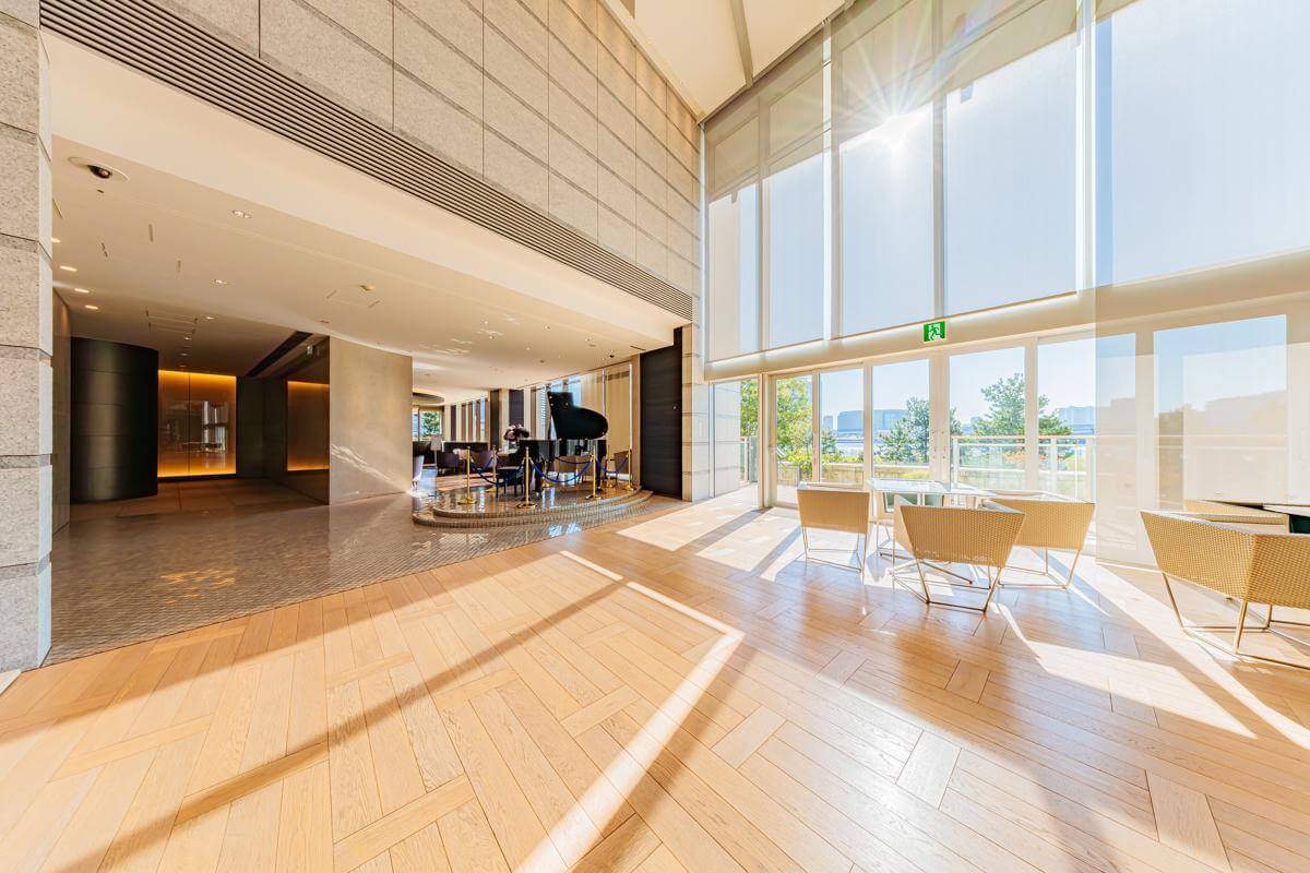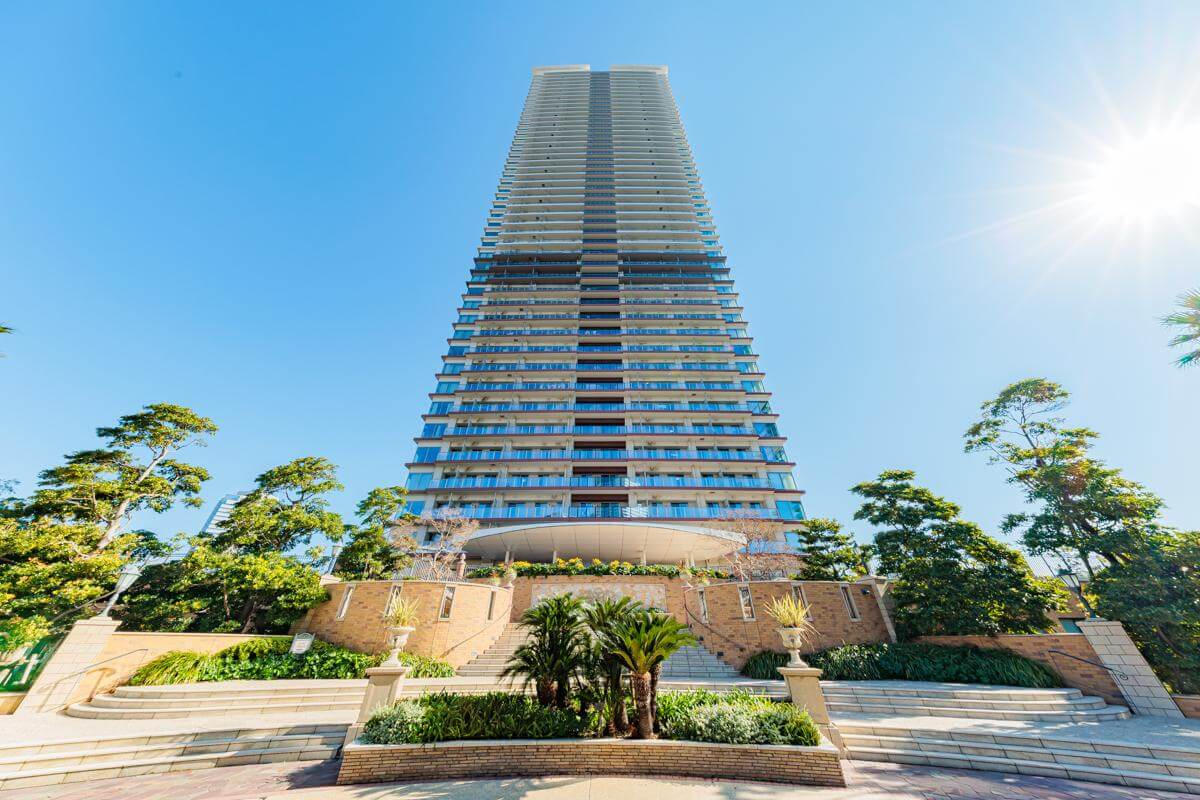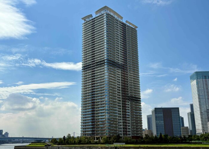 「パークタワー晴海」は、2019年2月竣工の地上48階建て総戸数1,076戸の大規模タワーレジデンスです。東京ディズニーリゾートを手がけるオリエンタルランドが外構デザインを担当。約19,000㎡超の敷地には、「イマジネーションランド」をテーマにしたグリーティングゾーン、アトラクティブゾーン、フレンドシップゾーン、ピースフルゾーン、ブライトゾーンの5つのゾーンが広がり、都心にいながら非日常を感じられる空間が演出されています。共用施設には湾岸を一望できる天空ラウンジや帆船をイメージしたゲストルーム、BBQスペース、キッズフィールド、フットサル・バスケットコート、フィットネスジムや酸素カプセル、無人コンビニなどが整い、ハイクオリティな共有施設が充実しています。タクシー配車、冷蔵・冷凍品預かり、クリーニングや宅配便取次といったサービスも提供しており、利便性の高い生活をサポートしています。建物は、免震構造とDFS(デュアルフレームシステム)ハイブリッド構造を採用。DFSとは、建物中央に配置した心棒を外周の柔構造建物と連結し、制振装置(オイルダンパー)で揺れを吸収する仕組みです。これにより、免震だけでは対応できなかった長周期地震動や風揺れにも強く、低層階から高層階まで揺れを軽減します。さらに非常用発電設備を約72時間分備え、災害時には防災拠点や共用部へ電力を供給します。防犯面もオートロック、防犯カメラ、24時間セキュリティ、有人管理体制などの強固な対策がされ、居住者の安全が守られています。